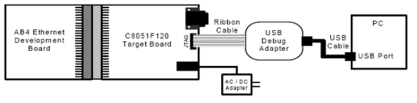 Kit-ul Ethernet include o placa C8051F120, placa ethernet AB4, adaptor USB de decodare (JTAG) si toate cablurile necesare pentru conectarea MCU la o retea ethernet. Placa C8051F120 are incorpoarata 100 MIPS, 128 kB Flash, 8kB RAM, un Microcontroler C8051F120 bazat pe un 8051. Interfata retelei MCU data de placa AB4 consta in controler-ul ethernet CP2200 si un conector RJ-45 care integreaza componente magnetice si LED-uri. Libraria TCP/IP include un driver pentru CP2200 si are o interfata speciala pentru driver cu template-uri auto generate pentru a permite scrierea. Proiecte cu pana la 4kB de cod si nelimitat cod de librarie pot fi puse in aplicare folosind setul de utilitati incluse.