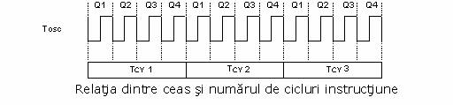Clock-ul de la oscilator intra într-un microcontroler prin pinul OSC1 unde circuitul intern al microcontrolerului divide clock-ul în 4 clock-uri egale Q1, Q2, Q3 si Q4 ce nu se suprapun. Aceste 4 clock-uri constituie un ciclu de o singura instructiune (numit de asemenea ciclu masina) în timpul careia instructiunea este executata.