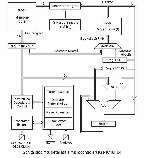 PIC16F84 apartine unei clase de microcontrolere de 8 biti cu arhitectura RISC. Structura lui generala este aratata în schita urmatoare reprezentând blocurile de baza.