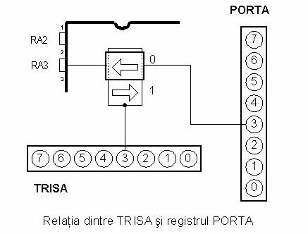 PORTUL A si PORTUL B sunt conexiuni fizice între microcontroler si lumea de afara. Portul A are 5 pini, iar portul B are 8 pini.