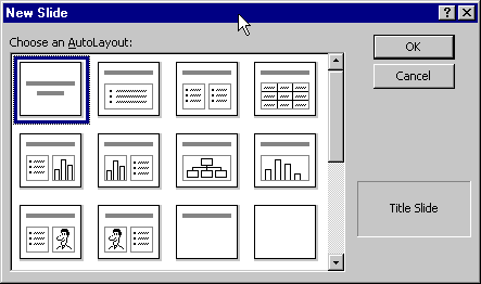 Ori de cate ori adaugati un nou diapozitiv intr-o prezentare, PowerPoint deschide in mod automat o noua caseta de dialog: