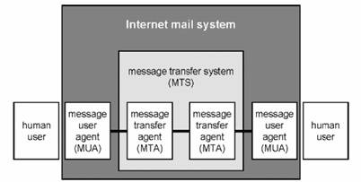 Figura urmatoare ilustreaza elementele unul sistem de e-mail si ale sistemului de transfer de mesaje din Internet.