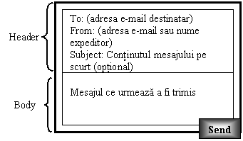 Pentru trimiterea unui mesaj cu ajutorul e-mail-ului, acesta trebuie sa contina informatiile despre expeditor si destinatar (asemanator corespondentei clasice).