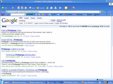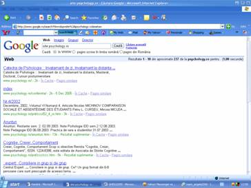 Rezultatul va fi un numar mai rezonabil de adrese pe care le puteti consulta. Fiecare adresa are o scurta descriere a site-ului respectiv astfel încât dintr-o privire rapida ne putem da seama care dintre adresele gasite prezinta un real interes pentru cautarea noastra.