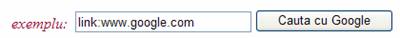 Unele cuvinte, când sunt urmate de doua puncte (:), au un înteles aparte pentru Google. Un astfel de cuvânt este operatorul "link:". Cautarea link: url va oferi o lista cu toate paginile care indica spre URL-ul mentionat. De exemplu, cautarea link:www.google.com va arata o lista cu toate paginile pe care exista o legatura spre pagina Google. Nu se poate combina o cautare link: cu o cautare obisnuita dupa un cuvânt cheie.