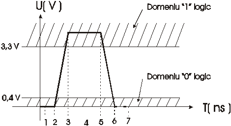 Dupa cum se observa n fig.4.1. semnalul reprezentat la t=0 este "0" logic, la t=2 incepe sa creasca spre 1 logic, la t=3 deja este "1" logic se mentine 2 ns si apoi "cade" inapoi la "0" logic.
