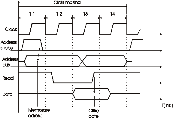 In realitate apar mult mai multe semnale care duc la citirea memoriei. Pentru celelalte cazuri exista c te o diagrama la fel ca aceasta dar distributia in timp a semnalelor va fi specifica fiecarui tip de ciclu.