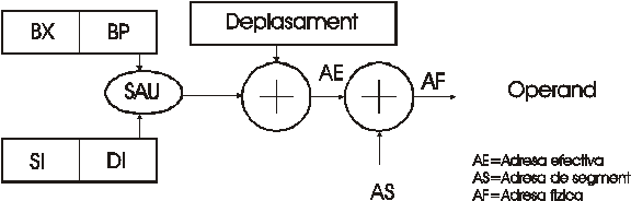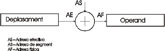 Pentru aflarea adresei operandului se folosesc denumirea de adresa segment (AS) pentru adrese de inceput a segmentului in care se afla operandul si adresa efectiva (AE) pentru deplasaamentul operandului in cadrul segmentului .