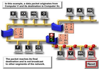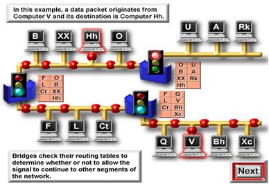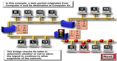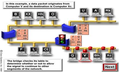 Realizand acest lucru , bridge-urile reduc semnificativ cantitatea de trafic intre segmentele retelei , eliminand traficul inutil . Urmariti graficele pentru a observa cum un bridge realizeaza expedierea pachetelor de date , reducand traficul inutil din retea.