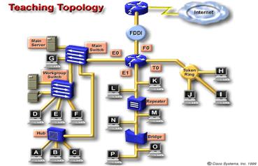 LAN . Router-ul din exemplul dat conecteaza technologii LAN Ethernet, token-ring, si FDDI - segmentand LAN-ul .Poate conecta LAN-uri avand diferite protocoale (IP vs. IPX vs. AppleTalk) si poate avea conectare seriala la WAN . |