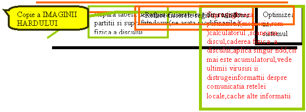 OBS:daca calculatorul nu incarca sistemul de operare se procedeaza astfel: introduc discheta creata anterior;deschid alculatorul;apareA:\>scriuNDD;RESCUE(se scrie asa dupa acea)si aleg RESTORE