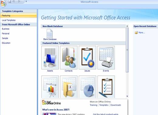 Exista mai multe modalitati de lansare a sistemului Access, una din ele fiind executarea consecutiva a actiunilor Start/All Programs(sau Programs)/Microsoft Office/Microsoft Office Access 2007.