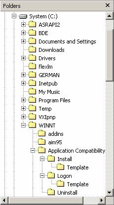 Procesul prin care un utilizator ii spune sistemului de operare unde se afla un fisier poate fi numit rasfoire (browsing), iar pentru acest lucru trebuie cunoscuta calea de acces la fisier (pathname-ul). Intr-un sistem de fisiere ierarhic, lista dosarelor prin care se trece pentru a se ajunge din directorul curent la fisierul dorit este denumita pathname (nume de cale) sau Directory path (cale de directoare). O cale de acces este ca o adresa a fisierului. Cand se indreapta spre casa dumneavoastra o scrisoare este dirijata spre tara dvs., orasul, strada si in final spre apartamentul sau casa dvs. O cale de acces dintr-un calculator are acelasi rol. Astfel, pentru ca sistemul de operare Windows sa ajunga la un fisier din directorul Template trebuie sa inceapa cu dosarul C:, sa treaca prin dosarul WINNT, iar apoi prin dosarele Application Compatibility si Logon. Abia pe urma ajunge la dosarul Template. (Fig. 3.1)