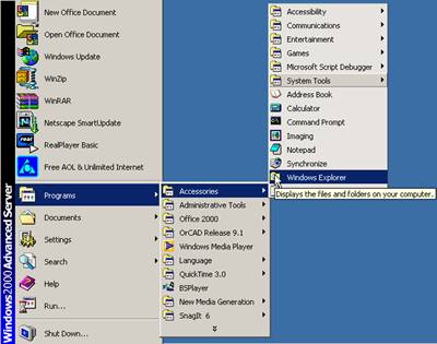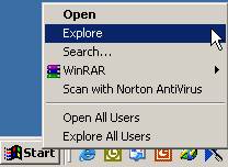 Pentru a lansa programul Windows Explorer selectati Start Þ Programs Þ Accessories Þ Windows Explorer (Fig. 3.2) sau efectuati clic-dreapta pe butonul Start si apoi selectati Explore (Fig. 3.3).