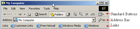 Celelalte optiuni din Explorer Bar: Favourites, Media si History sunt utilizate cu precadere in situatia existentei unei conexiuni la Internet, afisand lista adreselor Internet preferate (Favorites), fisierele multimedia (Media) si ultimele adrese Internet vizitate (History).