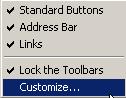Daca un utilizator utilizeaza foarte des anumite comenzi care nu sunt incluse in bara de instrumente standard, acesta poate sa personalizeze si mai mult modul de aparitie a ferestrelor celor doua programe prin adaugare butoanelor dorite. Pentru a efectua acest lucru selectati din bara de meniuri View Þ Toolbars Þ Customize (Fig. 3. 10).