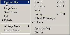 Utilizatorul poate nu numai sa aleaga preferintele sale pentru modul de aparitie a barei de instrumente, dar si pentru fereastra din stanga a programului Windows Explorer. Pentru a schimba continutul acestei ferestre sunt folosite optiunile submeniului Explorer Bar (cu submeniurile sale) din meniul View (Fig. 3.13).