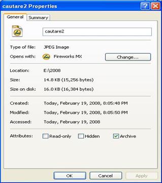 - descrierea fisierului: titlu, subiect, cuvinte cheie, comentarii;