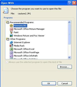- aplicatia cu care acest tip de fisier se deschide (Opens With); daca doriti ca toate fisierele de un anumit tip sa fie deschise de catre un anumit program puteti schimba programul implicit apasand butonul Change. Va fi deschisa caseta de dialog Open With care permite selectarea aplicatie dorite (Fig. 3. 40).