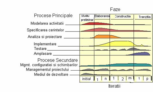 De exemplu, in cazul Rational Unified Process, ciclul de dezvoltare este prezentat in figura urmatoare: