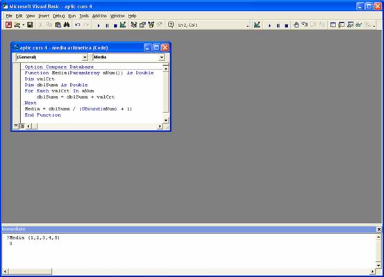 Observatie: indicii matricelor de parametri încep întotdeauna de la zero, indiferent daca în Declaration am specificat optiune Option Base 1.