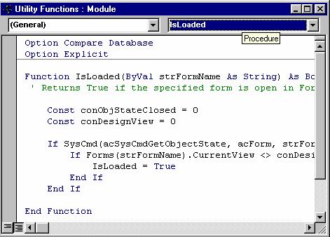 Aceasta procedura Access relativ simpla (care, probabil, va fi un modul standard) foloseste majoritatea elementelor de cod VBA. Toate procedurile VBA pe care le veti întâlni vor fi similare cu aceasta.