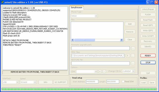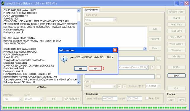 Felicitari, ai aplicat patch-ul pe telefon; acum apasa "QUIT" si scoate cablul USB din telefon. (daca vrei sa scoti patch-ul apesi pe "YES" la pasul 7.)