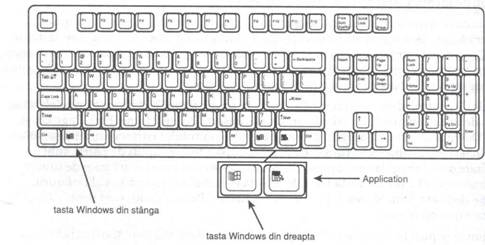 Specificatia de tastatura Microsoft Windows schiteaza un set de noi taste si de combinatii de taste. Macheta familiara cu 101 taste a ajuns astfel la 104 taste, prin adaugarea tastelor Windows din stânga si din dreapta si a tastei Application. Aceste taste sunt folosite de sistemul de operare si pentru combinatiile de taste de la nivelul aplicatiilor, într-un mod similar celui în care sunt utilizate combinatiile cu tastele Ctrl si Alt. Pentru a folosi sistemele Windows 98 si NT nu este nevoie de aceste taste noi, dar distribuitorii de software au început sa adauge functii specifice produselor Windows pe care le creeaza si care folosesc tasta Application (similara ca functionalitate cu executarea unui clic cu butonul drept al mouse-ului). În figura este reprezentata macheta standard a tastaturii Windows, incluzând cele trei taste noi.