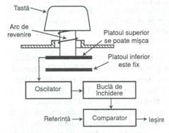 În momentul apasarii tastei, pistonu1 muta platoul superior fata de platoul inferior fix. De obicei exista un mecanism care asigura un raspuns tactil distinct, emitând un clic rasunator. Pe masura ce platoul superior se muta, capacitatea dintre cele doua platouri se schimba. Circuitul comparator din tastatura detecteaza aceasta modificare.