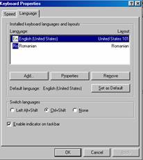 Dupa ce se deschide Keyboard din Control Panel si se selecteaza eticheta Language, în caseta Language se poate adauga macheta tastaturii pe care o dorim prin executarea unui clic pe butonul Add, si selectarea uneia dintre limbi. Aceste machete de tastatura atribuie caractere diferite anumitor taste de pe tastatura standard.