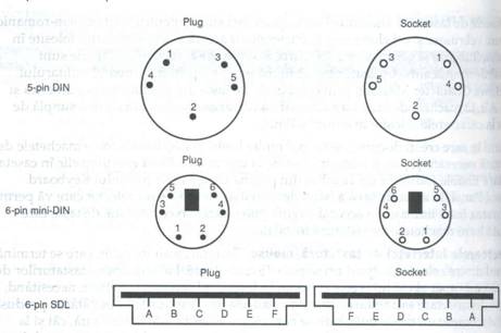 - conector DIN cu 5 pini, folosit în majoritatea sistemelor PC cu placi de baza format baby AT,