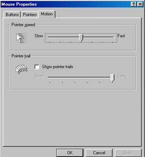 Utilizând cea de-a treia eticheta, se poate controla relatia dintre distanta pe care se misca mouse-ul si distanta pe care se misca indicatorul pe ecranul calculatorului. De exemplu, daca suprafata de lucru ofera numai o mica zona în care se poate deplasa mouse-ul, se poate muta cursorul Pointer Speed spre dreapta, marind astfel viteza. În acest fel pot fi evitate ridicarea mouse-ului de pe suprafata de lucru pentru a-l deplasa pe tot ecranul.