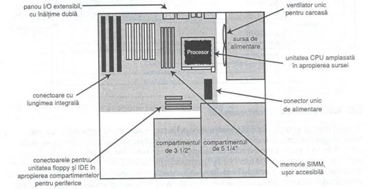 o alta amplasare a conectorilor I/O (pentru unitatile de discheta si hard-disk) astfel încât accesul la acestea sa fie mai usor, iar cablurile interne sa fie mai scurte,