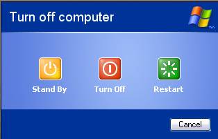 Repornirea calculatorului poate fi realizata si prin actionarea butonului de repornire Reset, existent pe unitatea centrala, aceasta metoda nu este însa recomandata.