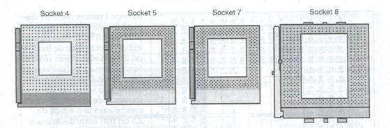 Socket 1, 2, 3, si 6 sunt socluri pentru procesoarele 486, iar Socket 4,5,7 si 8 sunt socluri pentru Pentium si Pentium Pro. Ele sunt reprezentate în figura de mai jos: