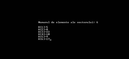 2. Dupa introducerea numarului de elemente ale vectorului notat A, se trece la introducerea fiecarui element in parte: