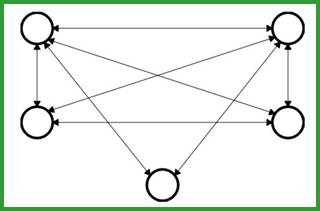 Aceasta topologie presupune existenta unei conexiuni intre oricare doua noduri din retea. Din acest motiv ea se mai numeste si arhitectura total conectata.