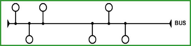 ATENTIE: Caracteristica esentiala a topologiei BUS - sunt necesari algoritmi si dispozitive de arbitrare a accesului la mediul fizic comun.