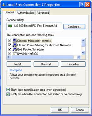 Clic dreapta pe pictogramasi selectarea Properties apare caseta de dialog care permite adaugarea unui nou protocol:
