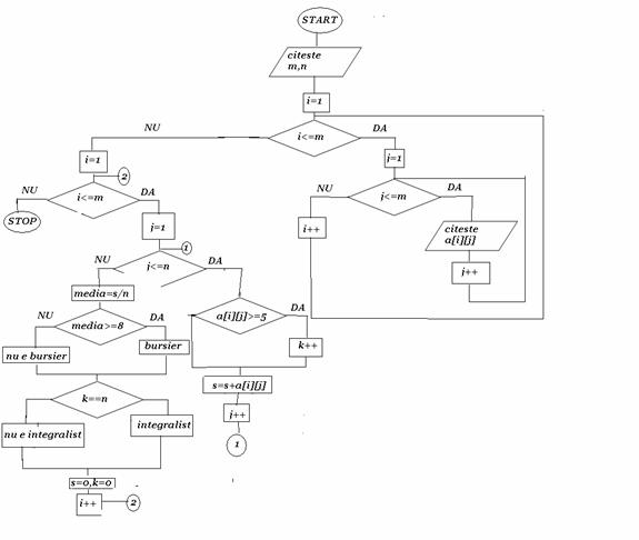O matrice m*n cu m studenti si n discipline.Matricea contine notele studentilor.Sa se determine: