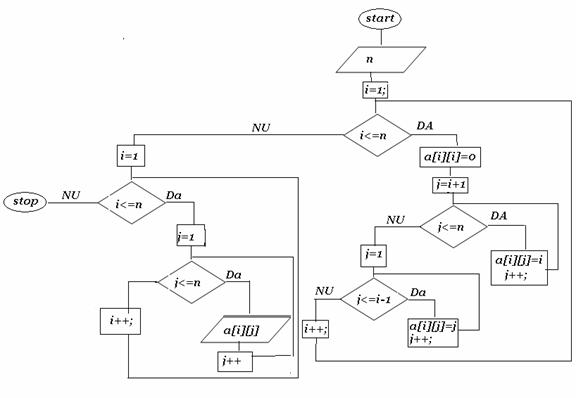 Sa se construiasca o matrica astfel incat pe diagonala principala sa fie valoarea 0, in zona de deasupra diagonalei principale sa fie valoarea liniei iar in zona de dedesuptul diagonalei principale sa fie valoarea coloanei.