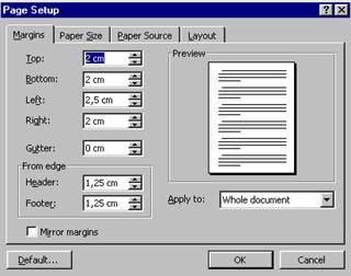 Daca utilizatorul doreste sa faca o modificare mai mare sau sa introduca un numar specific o poate face prin click īn portiunea ferestrei de editare si introducere directa prin tastare. Din nefericire portiunea ferestrei de editare din figura prezentata mai sus nu este limitata. Īn caseta de dialog Page Setup daca utilizatorul introduce o valoare eronata apare o fereastra cu un mesaj de eroare explicānd limitele minima si maxima si invitānd utilizatorul sa apese butonul OK pentru a continua.