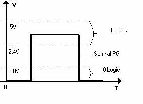 Sursa AT furnizeaza tensiuni de +5V , +12V , -5V , -12V direct la mainboard sau la unitatile de stocare masiva a datelor. Reglajul unei surse este efectuat astfel incit sa se obtina cit mai exact +5V celelalte tensiuni derivind din aceasta valoare.Pe linga semnalele utile la o sursa AT se utilizeaza si semnalul PG (Power Good) ce este furnizat de sursa si indica mainboardului ca tensiunile sint corecte.Daca acest semnal este in 0 logic mainboardul nu porneste iar daca este in 1 logic el porneste.Intr-o functionare normala PG este in 1 logic si apare cu o mica intirziere fata de tensiunile de iesire.