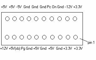 Sursa ATX introduce un nou conector cu 20 linii de semnal aranjate in 2 rinduri de pini , fata de o sursa AT furnizind si tensiunea de 3.3 V .