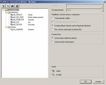ATENTIE: Layerele nu pot fi dezactivate din aceasta fereastra. Layerele le dezactivati fie inainte de a aduce desenul in pagina de plotare fie ulterior. Layerele pot fi dezactivate si din pagina de plotare (Selectie layere, definire).