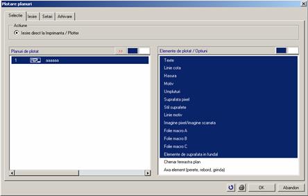 Intr-un proiect puteti utiliza pana la 1000 de planuri de plotare. Aici selectati un plan de plotare. (il puteti denumi in prealabil).