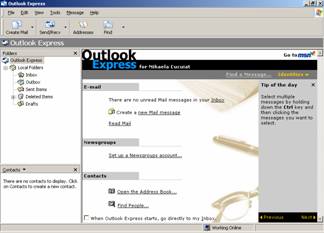 La lansare programul Outlook Expres preia trimiterea si primirea masajelor. Initial imaginea ferestrei este cea din figura urmatoare. In panoul din stanga ferestrei este afisata o structura arborescenta cu foldere de depozitare. Acestea sunt: