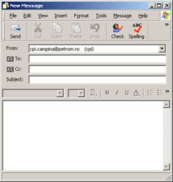 cu o bara de formatare in cazul in care tipul mesajului trimis este Rich Text (HTML) care permite optiuni de formatare. Aspectul mesajului este deosebit dar s-ar putea ivi probleme la destinatarul mesajului daca programul sau de e-mail nu suporta formatarea.