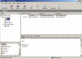 In momentul in care selectati un mesaj, continutul lui se vede afisat in fereastra de jos a ferestrei.