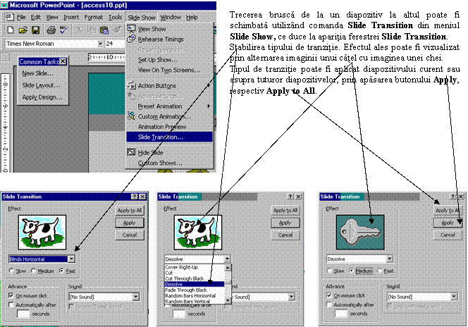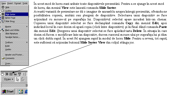 Un editor de texte este un program ce ne ofera posibilitatea intocmirii oricarei lucrari stiintifice. Totusi, fisierul rezultat nu este cel mai adecvat mod in care, in fata unui auditoriu ne putem sprijini cu imagini explicatiile noastre. In aceste situatii mult mai util este un aparat ce sa proiecteze diapozitive cu imaginile dorite. In costructia diapozitivelor putem folosi editorul de texte si apoi fotografia i 525d37f maginile. Totusi nu e varianta optima, vom trudi destul de mult si vom fi nevoiti sa apelam la trucaje pentru a inlatura meniurile editorului. Sigur putem alege varianta tiparirii imaginilor si abia apoi a fotografierii lor. Sunt variante la care la nevoie putem apela. Variante care au impus aparitia unui produs program ce sa fie dedicat intocmirii de diapozitive si desfasurarii unui spectacol cu aceste diapozitive. Un astfel de produs este Microsoft PowerPoint.
